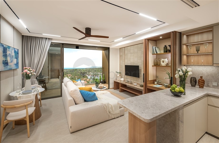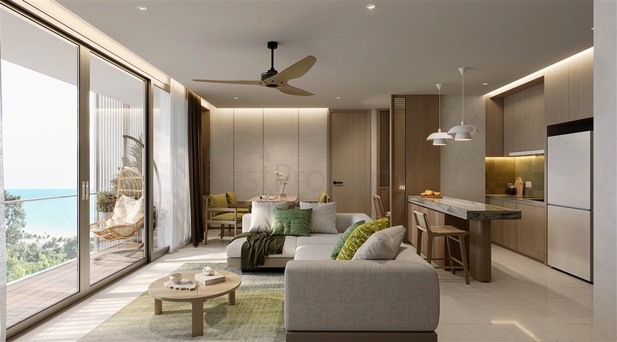 Доступны апартаменты формата 1, 2 и 3 спальни. Малоэтажная застройка, зеленые сады, вид на воду, просторные террасы и панорамные окна создают атмосферу приватного отдыха круглый год.