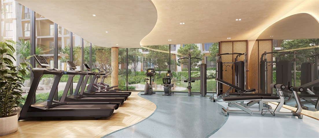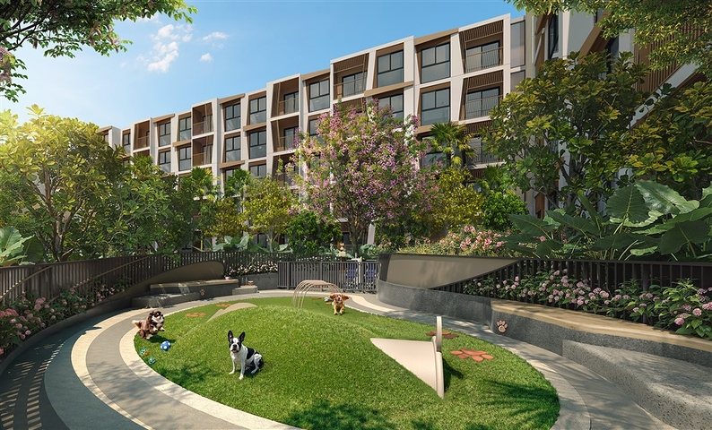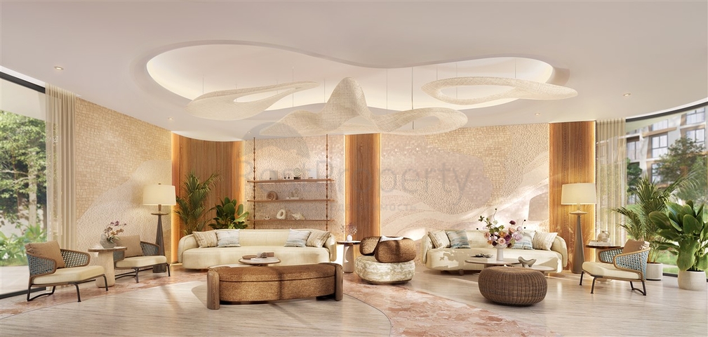Жилые здания расположены вокруг большого центрального бассейна и садовой территории, что формирует гармоничную и спокойную среду для жизни. Архитектура и благоустройство вдохновлены природой острова: зелёные зоны, водные элементы и прогулочные аллеи создают комфортную курортную атмосферу.