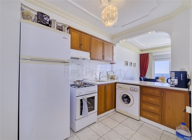 В районе Махмутлар на первой линии в 50 м от моря, на продажу выставлены комфортабельные, меблированные апартаменты планировки 2+1. Квартира площадью 100 м2 находится на 5 этаже. Апартаменты состоят из большой гостиной, объединённой с кухней, двух спален, санузла с душевой кабиной и балкона от куда открывается потрясающий вид на море и горы. Жилой комплекс расположен на первой береговой линии в Махмутларе, всего в 50 метрах от моря и пляжа.
