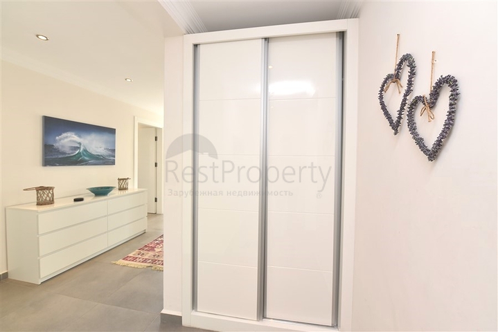 Общая площадь квартиры составляет 230 м2 и включает в себя две спальных комнаты, одна из них с собственным санузлом, гостиную совмещённую с кухонной зоной, гостевой санузел, один большой балкон. Квартира продаётся с мебелью и бытовой техникой, поэтому не требует дополнительных вложений с вашей стороны.