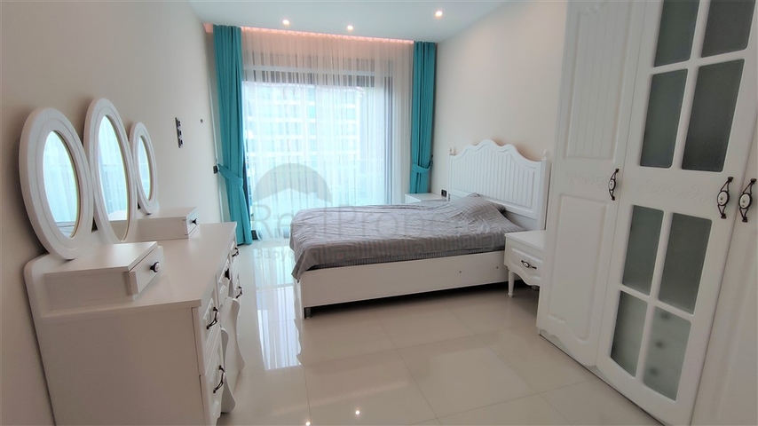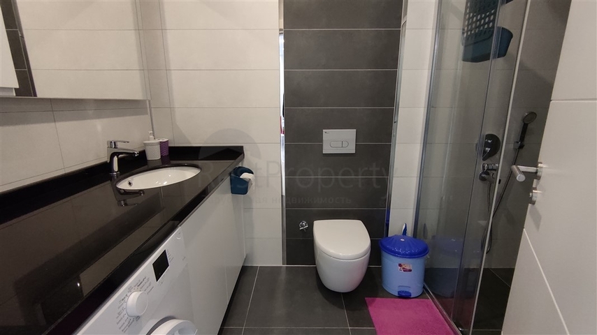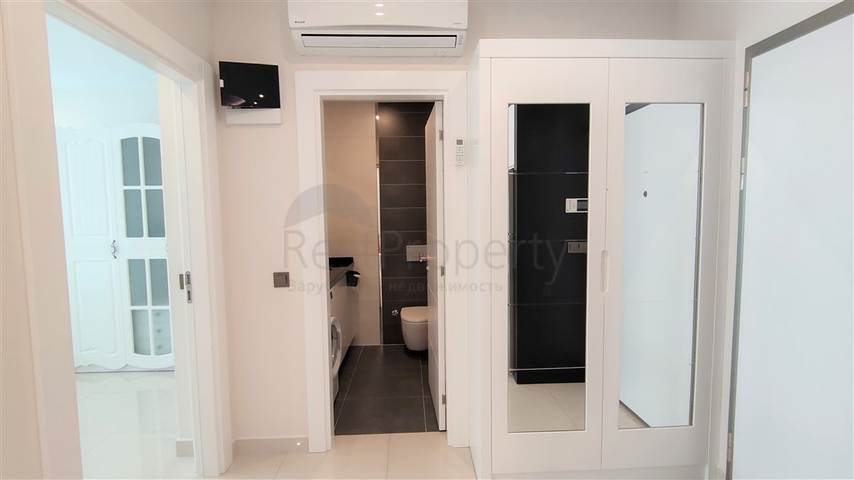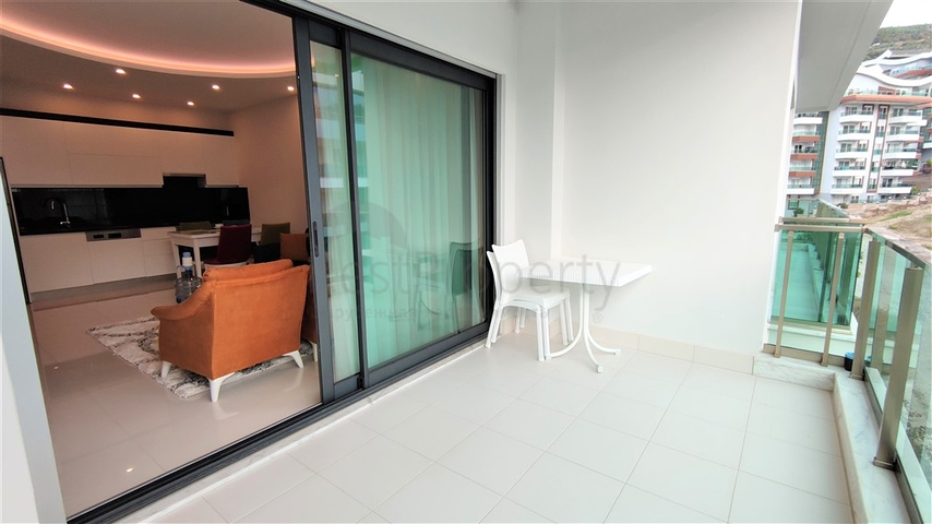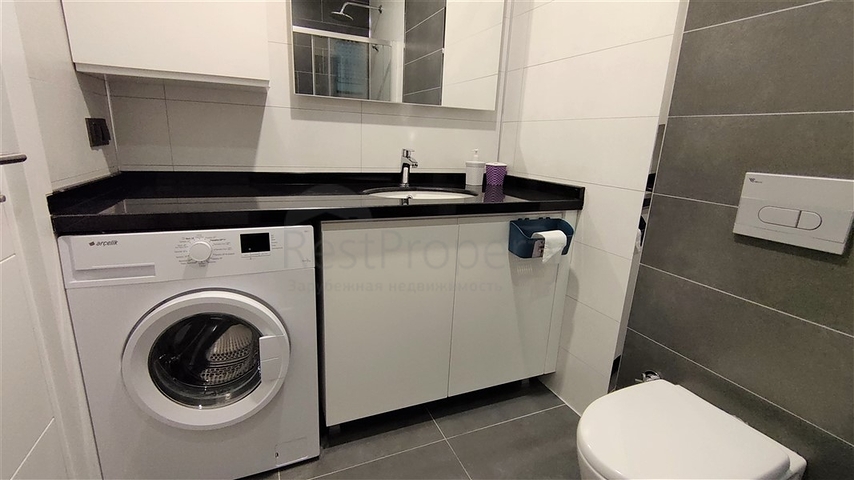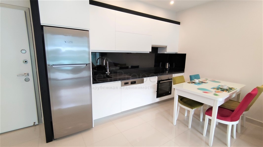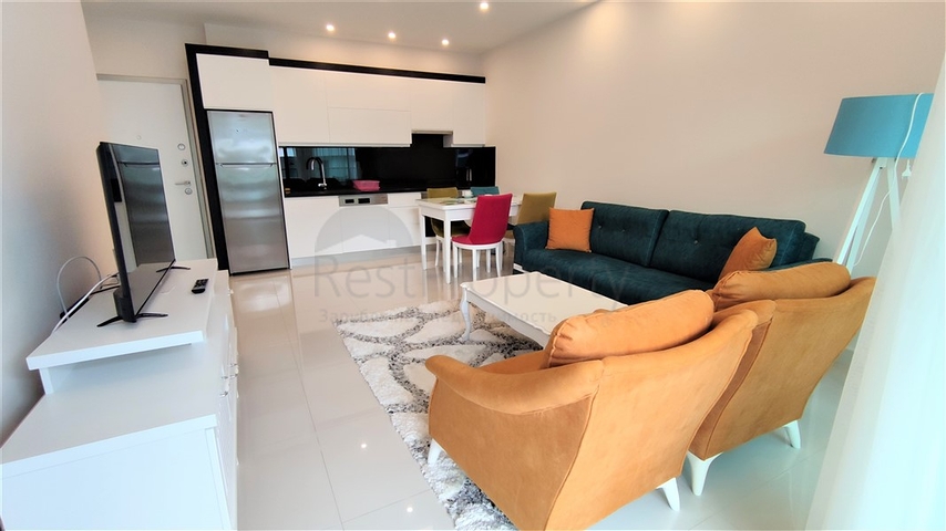 Планировка квартиры 1+1 включает в себя: кухню открытого плана, совмещенную с гостиной, одну спальную комнату, санузел и один просторный балкон. Квартира продается со всей необходимой для жизни мебелью и техникой.