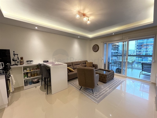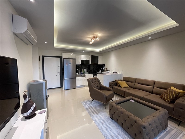 В комплексе района Авсаллар от собственника на продажу выставлена квартира планировки 1+1. Одна спальня, кухня открытого типа, совмещенная с гостиной, ванная комната и балкон — все это входит в площадь квартиры, которая составляет 65 м2 брутто. Квартира укомплектована мебелью и техникой и уже готова к переезду нового собственника или сдаче в аренду.