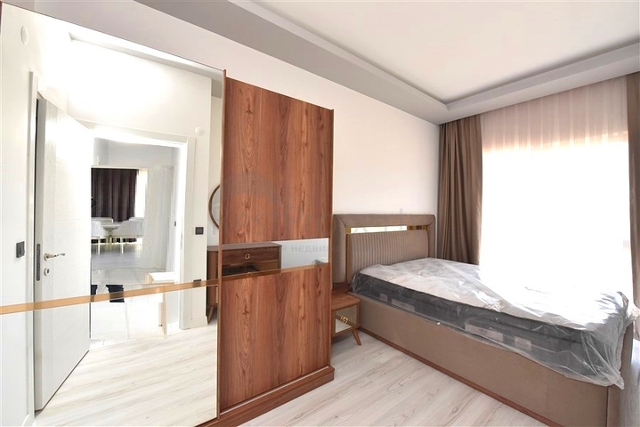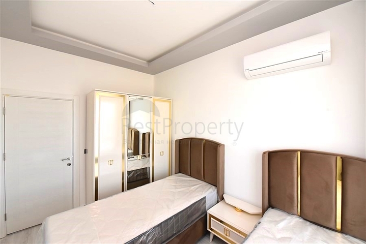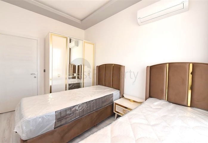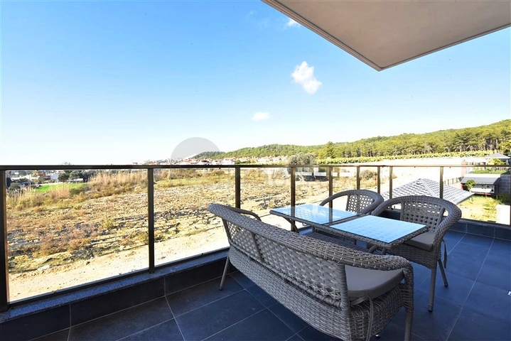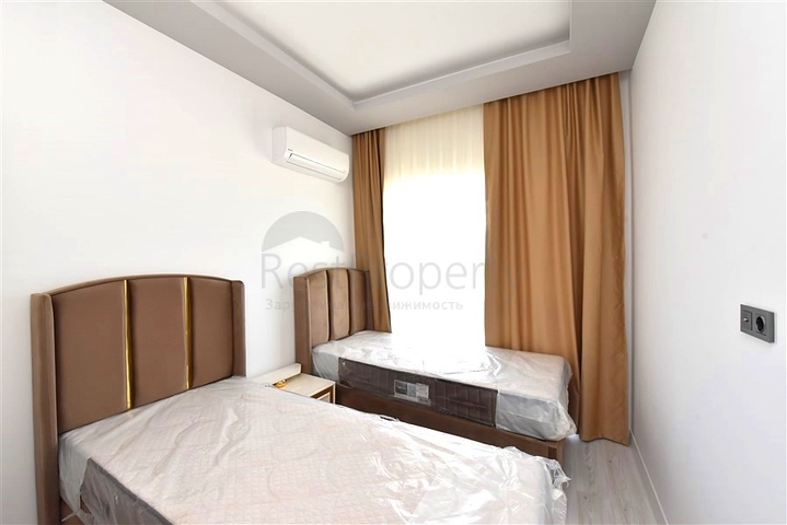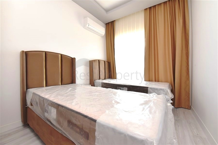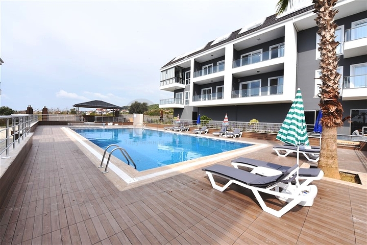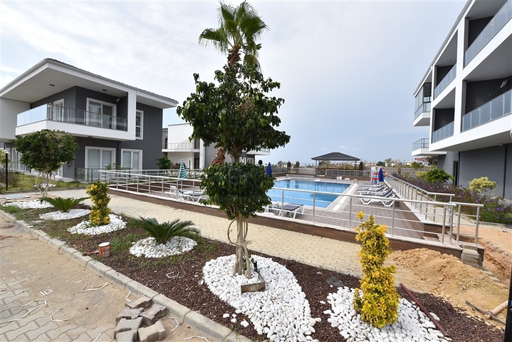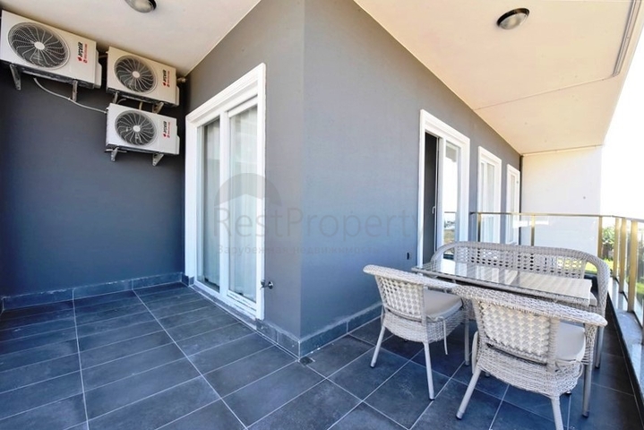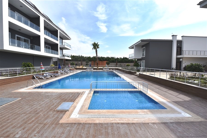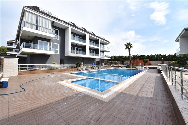 Квартира площадью 95 м2 расположена на высоком первом этаже, имеет исключительный свежий ремонт и обустроена всей необходимой новой мягкой мебелью и бытовой техникой. В квартире предусмотрено наличие двух спальных комнат, гостиной и кухни, а также два санузла и один балкон. Из апартаментов открывается вид как на зелёную территорию комплекса, так и на Средиземное море. Расстояние к пляжу составляет всего 150 метров.