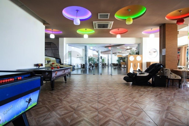 Комплекс отличается своей большой территорией и инфраструктурой отельного типа, которая включает в себя открытый бассейн с детской зоной, водные горки, закрытый бассейн с кафетерием и баром у бассейна, сауну, хамам, для занятий спортом имеется просторный тренажерный зал, теннисный корт, футбольное поле, бильярдный и теннисный стол, для развлечений имеется детская площадка, игровая комната, для вечернего отдыха беседки с барбекю. Для автомобилей есть открытая автопарковка. Расстояние до моря составляет всего 500 м. За безопасностью территории следит круглосуточно охрана, по всему периметру установлена система видеонаблюдения. На случай отключения электроэнергии установлен генератор.