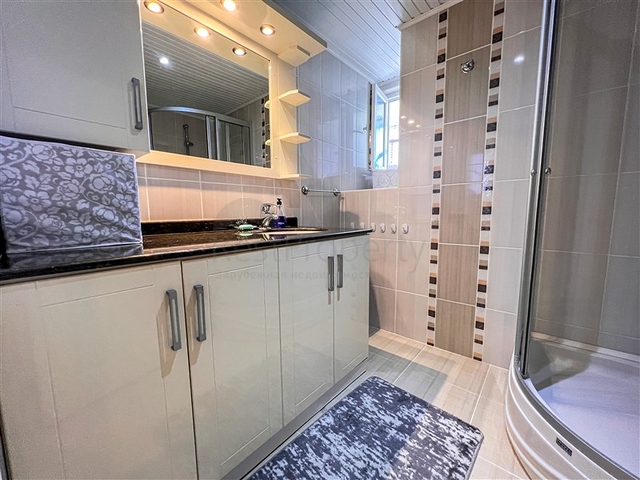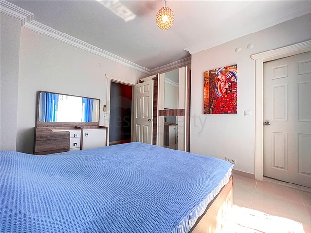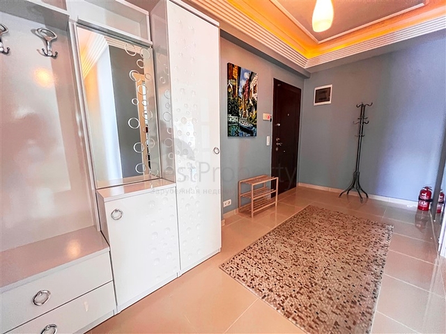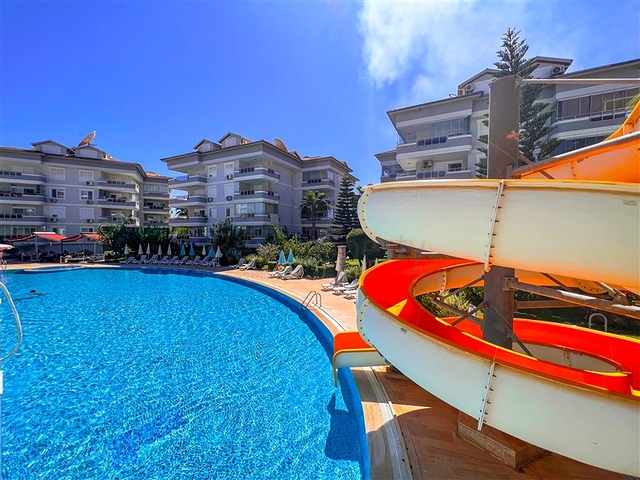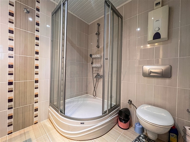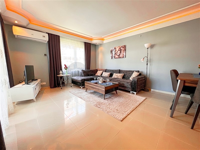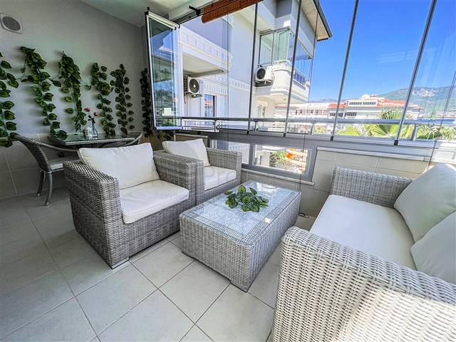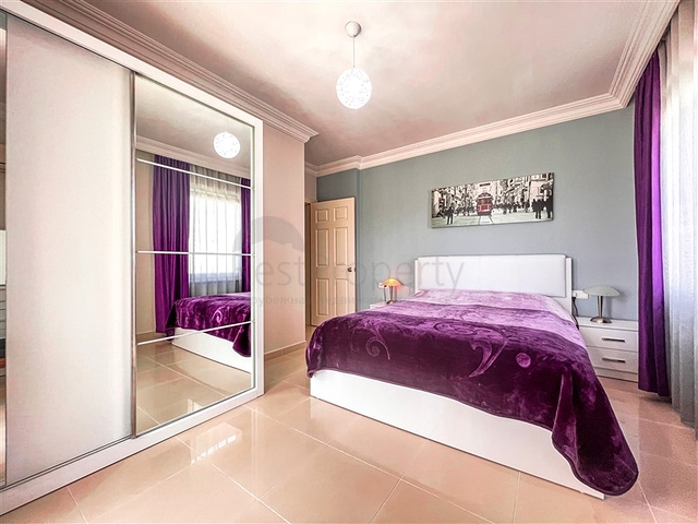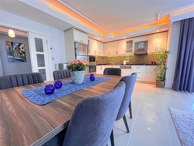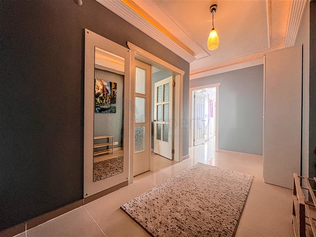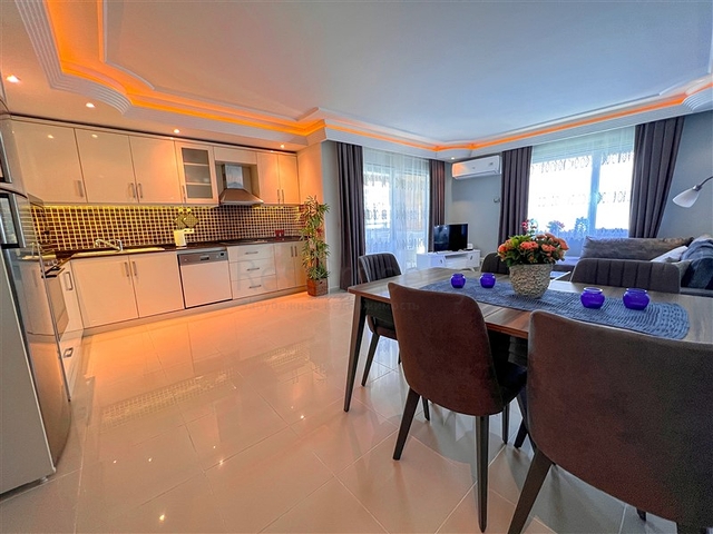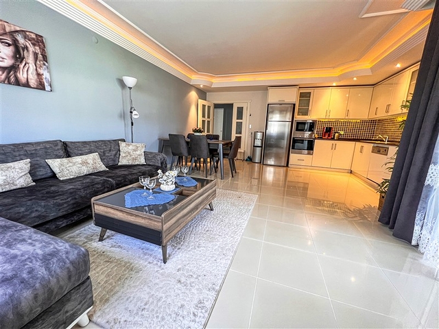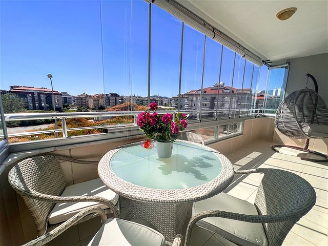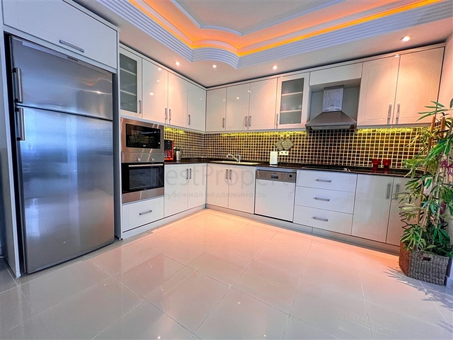 Квартира имеет нестандартно просторную планировку, создавая ощущение комфорта и свободы. Большая терраса станет вашим уединенным уголком, где можно наслаждаться свежим воздухом в любое время года, ведь в Алании более 300 солнечных дней в году. Комплекс, в котором находится квартира, расположен в 900 метрах от моря. Он имеет зеленую придомовую территорию, где растет множество деревьев, в том числе лимоны, апельсины, гранаты, авокадо и т.д. Также жильцы комплекса имеют в своем пользовании открытый, крытый бассейн, теннисный корт, хамам, сауну, фитнес зал. Безопасность комплекса обеспечивается постоянной охраной и системой видеонаблюдения.