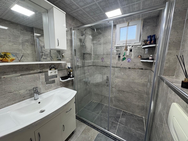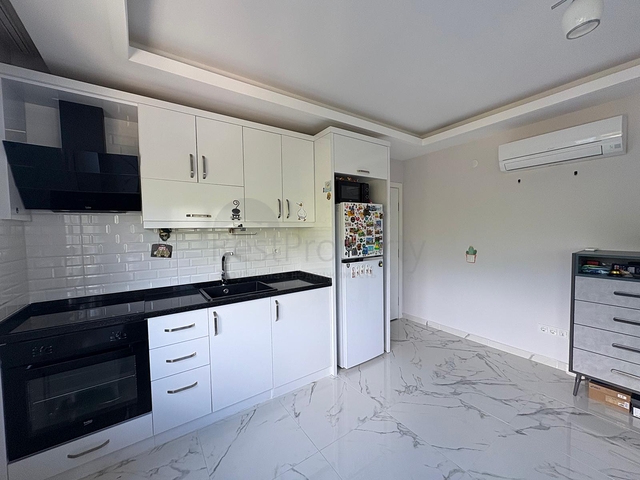 Предлагается к продаже уютная квартира планировки 2+1, расположенная на третьем этаже малоквартирного дома в спокойной и зелёной части района Оба. Общая площадь — 85 м². В квартире — просторная гостиная, совмещённая с кухней, две спальни, ванная комната с душевой кабиной и балкон. Апартаменты полностью меблированы, оборудованы всей необходимой бытовой техникой и системой кондиционирования воздуха. Кухня отделана гранитом, полы выложены плиткой.