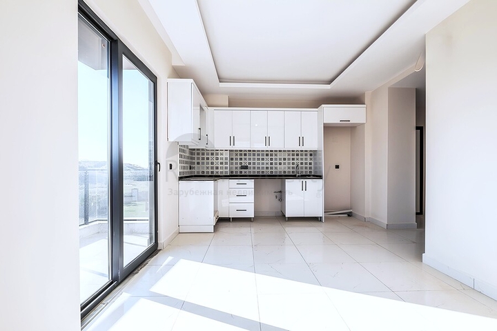 Предлагается светлая квартира 1+1 площадью 56 м², расположенная на первом этаже нового жилого комплекса 2024 года. Планировка включает гостиную с кухней, спальню, ванную комнату с душевой кабиной и балкон. В отделке использованы гранитная столешница на кухне и кафельные полы. Установлена система охлаждения через кондиционер.