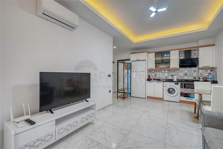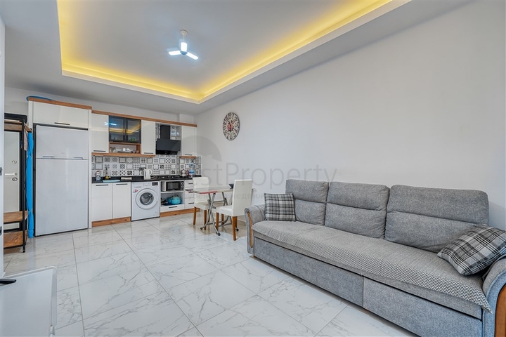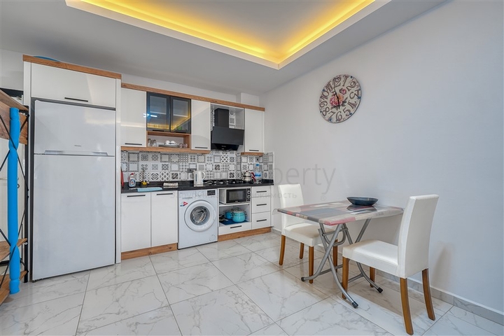 Предлагается стильная квартира планировки 1+1 площадью 55 м², расположенная на 4 этаже современного жилого комплекса в районе Махмутлар. Гостиная с кухней открытого типа, отдельная спальня, ванная комната и балкон — идеальное пространство для комфортной жизни. Квартира полностью меблирована и оснащена бытовой техникой, установлен кондиционер.