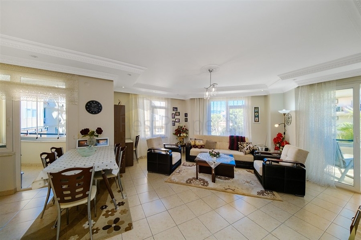 Продаётся светлая и просторная квартира планировки 2+1 на 3 этаже жилого дома всего на 32 квартиры. Общая площадь – 100 м², удачная планировка включает гостиную с кухней, две отдельные спальни, два санузла с душевыми кабинами и два балкона. Квартира продаётся с мебелью и всей необходимой бытовой техникой, установлены кондиционеры. В отделке использованы качественные материалы: кухонная зона выполнена с гранитной столешницей, на полу — керамическая плитка.