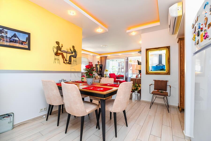 Представлен ухоженный жилой объект в комплексе с просторной территорией и насыщенной внутренней инфраструктурой. Полезная площадь 115 м², удобная планировка 2+1, расположение на 2 этаже, два балкона, два санузла. Планировка продумана для комфортной повседневной жизни, хорошее естественное освещение, ориентация на восток, север и запад. Объект полностью меблирован и укомплектован бытовой техникой, кухня с гранитной рабочей поверхностью, напольное покрытие из керамической плитки, в ванных комнатах установлены душевые кабины, предусмотрены различные варианты климат-контроля и дополнительного обогрева.