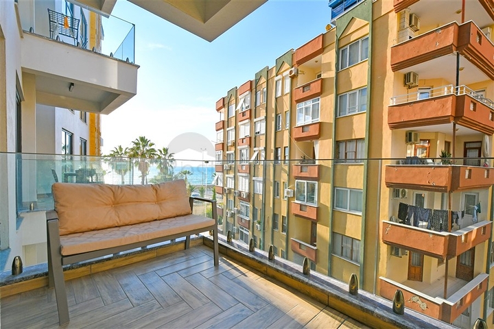 Двухкомнатная квартира формата 1+1 общей площадью 57 м² расположена на 2 этаже. Планировка включает гостиную с кухонной зоной, отдельную спальню, санузел и балкон. Квартира полностью меблирована и укомплектована бытовой техникой, установлена система кондиционирования, напольное покрытие выполнено из керамической плитки, кухня оборудована гранитной столешницей, ванная комната с душевой кабиной. Практичное решение для комфортной жизни в современном жилом формате.