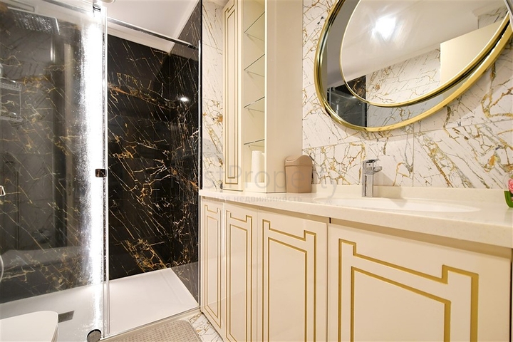 Двухкомнатная квартира 1+1 расположена на пятом этаже жилого дома в районе Махмутлар. Общая площадь — 60 м². Планировка включает гостиную с кухонной зоной, отдельную спальню, санузел и балкон. Квартира продаётся с мебелью и бытовой техникой. В кухне установлена гранитная столешница, напольное покрытие выполнено из плитки, в ванной комнате установлена душевая кабина. Комфорт в любое время года обеспечивает система подогрева пола.