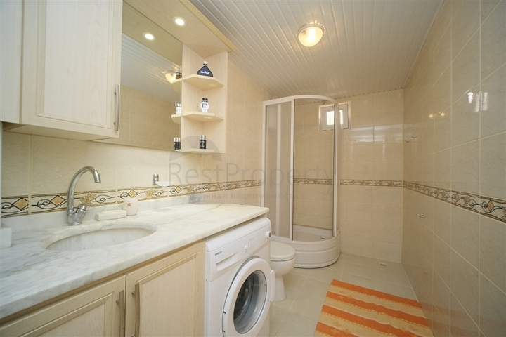 Предлагается трёхкомнатная квартира 2+1 общей площадью 85 м², расположенная на первом этаже малоквартирного жилого дома. Планировка включает светлую гостиную с кухней открытого типа, две отдельные спальни, ванную комнату, санузел и два балкона. Квартира полностью меблирована и оснащена бытовой техникой, установлен климат-контроль. В отделке использованы практичные напольные покрытия, кухня укомплектована гранитной рабочей поверхностью, в ванной комнате установлена душевая кабина.