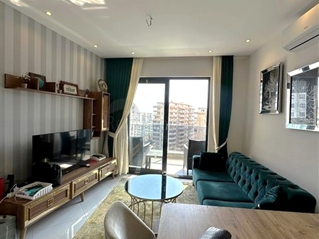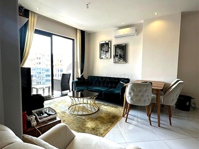Предлагается аккуратная и светлая квартира планировки 1+1, расположенная на 8 этаже современного жилого дома. Общая площадь составляет 57 м². Планировка включает гостиную с кухонной зоной, отдельную спальню, ванную комнату и балкон. Квартира полностью меблирована и укомплектована бытовой техникой, что позволяет сразу использовать её для комфортного проживания.