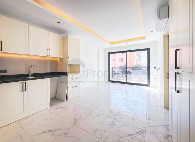 Предлагается уютная квартира планировки 1+1, расположенная на первом этаже современного жилого комплекса. Общая площадь — 62 м². Планировка продумана для комфортного проживания и включает гостиную с кухонной зоной, отдельную спальню, ванную комнату и балкон. В отделке использованы практичные и долговечные материалы: напольное покрытие из плитки, кухонные столешницы из гранита, в ванной комнате установлена душевая кабина. Для комфортного климата предусмотрена система кондиционирования.