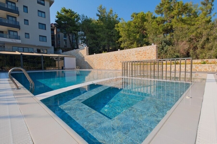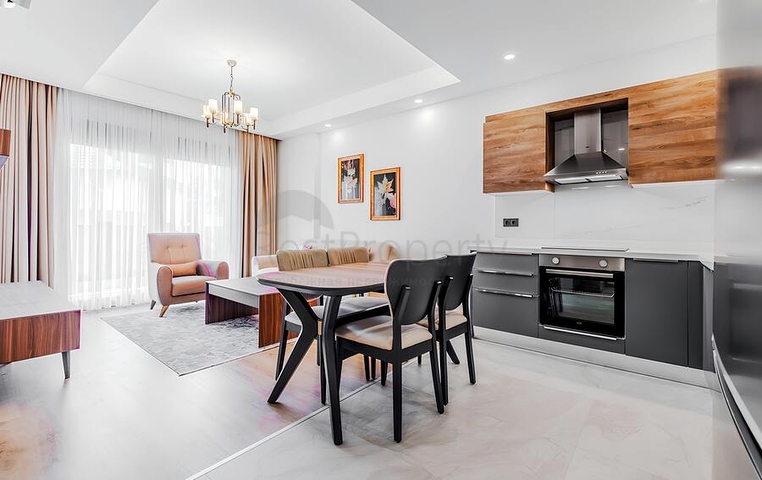 На продажу предлагается функциональная квартира планировки 1+1, расположенная на первом этаже малоквартирного жилого комплекса. Общая площадь составляет 58 м². Планировка включает гостиную с кухонной зоной, отдельную спальню, ванную комнату и балкон. Квартира полностью меблирована и укомплектована бытовой техникой. В отделке использованы практичные решения для повседневного комфорта: напольное покрытие из плитки, кухонные столешницы из гранита, в ванной комнате установлена душевая кабина, предусмотрена система кондиционирования.