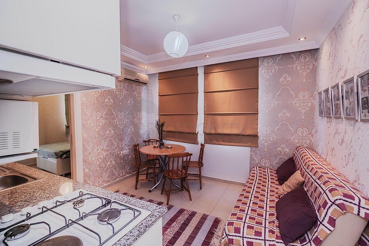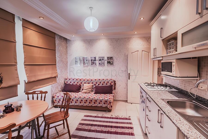 На продажу представлена компактная и функциональная квартира планировки 1+1, расположенная на первом этаже малoэтажного жилого дома. Общая площадь составляет 54 м². Планировка включает гостиную с кухонной зоной, отдельную спальню, ванную комнату и балкон. Квартира полностью меблирована и оснащена бытовой техникой. В отделке использованы практичные решения для повседневного комфорта: напольное покрытие из плитки, кухонные столешницы из гранита, в ванной комнате установлена душевая кабина, предусмотрена система кондиционирования.
