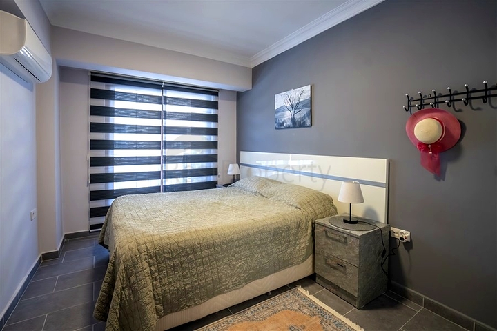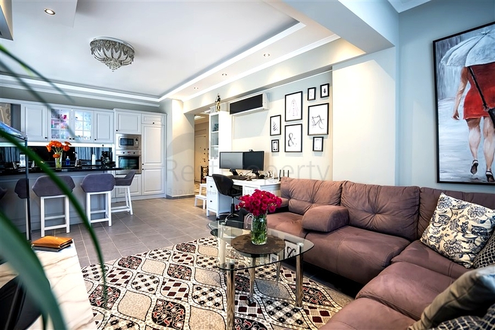 Квартира полностью меблирована и укомплектована бытовой техникой. В отделке использованы практичные и долговечные материалы, напольное покрытие — плитка, установлены кондиционеры. Окна обеспечивают хорошее естественное освещение, создавая приятную атмосферу в течение всего дня.