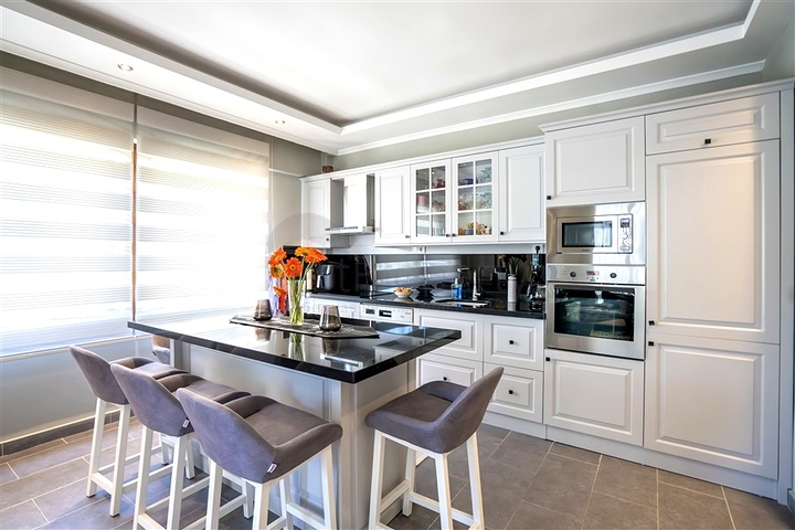 Предлагается уютная и функциональная квартира планировки 3+1, расположенная на втором этаже жилого дома. Общая площадь — 130 м². Планировка продумана для комфортного повседневного проживания: светлая гостиная, отдельная кухня с гранитной рабочей поверхностью, три спальни, две ванные комнаты с душевыми кабинами и два балкона.