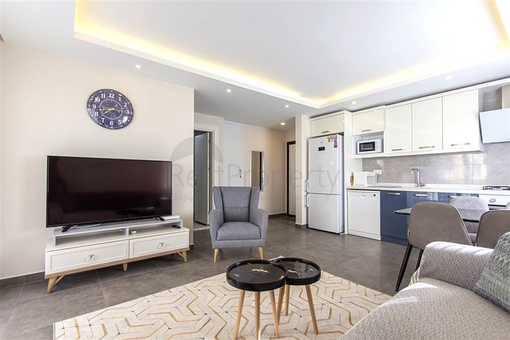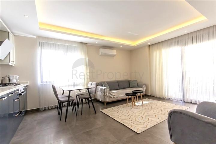 Предлагается светлая и аккуратная квартира планировки 1+1, расположенная на втором этаже современного жилого дома. Общая площадь — 65 м². В квартире продуманная планировка с комфортной гостиной, объединённой с кухонной зоной, отдельной спальней, ванной комнатой и балконом. Объект полностью меблирован и укомплектован бытовой техникой, установлен кондиционер, использованы качественные отделочные материалы, напольное покрытие — плитка, кухонная рабочая поверхность из гранита, в ванной комнате установлена душевая кабина.
