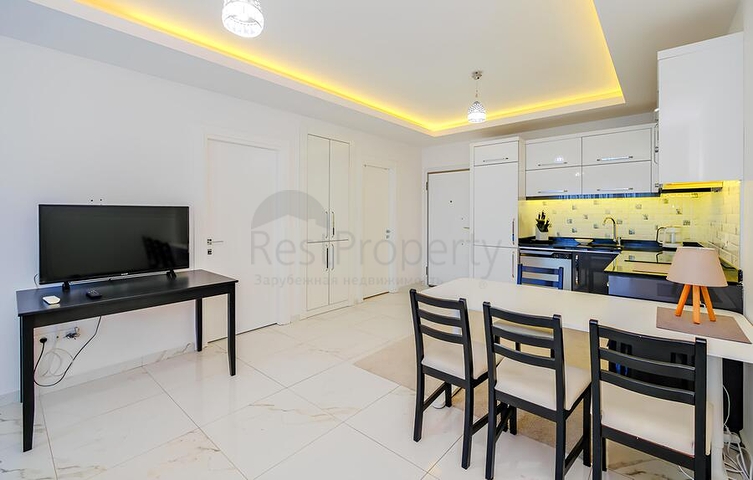 Предлагается уютная квартира планировки 1+1, расположенная на высоком этаже современного жилого дома. Функциональная планировка включает гостиную с кухней открытого типа, отдельную спальню, ванную комнату и балкон. Квартира полностью меблирована и укомплектована бытовой техникой, установлен кондиционер, кухонная зона оснащена гранитной рабочей поверхностью, напольное покрытие выполнено из качественной керамической плитки, в ванной комнате установлена душевая кабина.