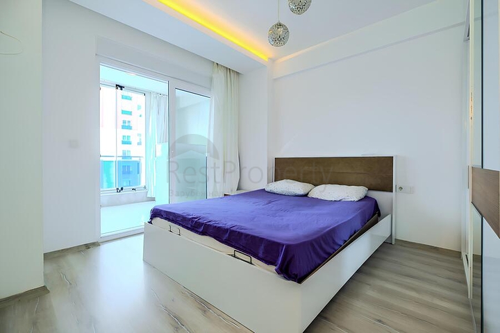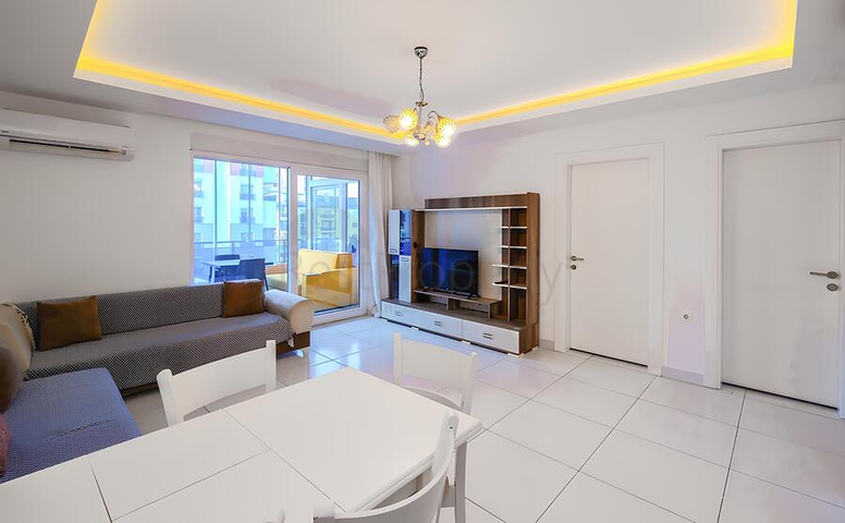 Предлагается светлая квартира планировки 1+1, расположенная на 4 этаже современного жилого дома. Общая площадь — 65 м². Планировка включает гостиную с кухней открытого типа, отдельную спальню, ванную комнату и балкон. Квартира полностью меблирована и оснащена бытовой техникой, установлены кондиционеры. В отделке использованы качественные материалы: гранитная рабочая поверхность на кухне, керамическое напольное покрытие, современная сантехника с душевой кабиной. Жильё ухоженное, готово к комфортному проживанию.