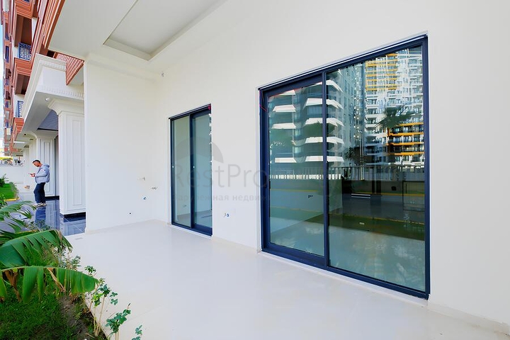 Предлагается светлая квартира планировки 1+1 общей площадью 86 м², расположенная на садовом этаже. Планировка продумана для комфортного проживания: гостиная с кухней открытого типа, уютная спальня, ванная комната, балкон. В отделке использованы практичные и качественные материалы, напольное покрытие — керамическая плитка, кухонная рабочая поверхность из гранита, в ванной установлена душевая кабина, система кондиционирования обеспечивает комфортный микроклимат.
