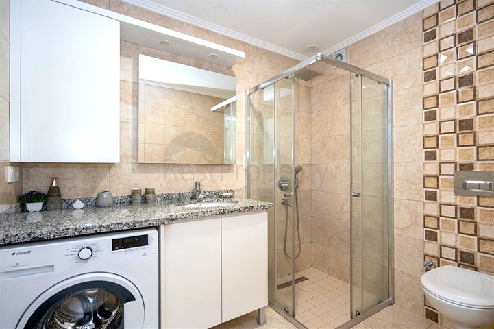 Предлагается светлая и ухоженная квартира планировки 2+1, общей площадью 115 м², расположенная на 2 этаже малоэтажного жилого дома. Планировка продумана для комфортной повседневной жизни: просторная гостиная с кухней открытого типа, две изолированные спальни, две ванные комнаты, отдельный гостевой санузел и балкон. Квартира продаётся с мебелью и бытовой техникой, установлены кондиционеры, на полу — ламинированное покрытие, кухонная зона оснащена столешницей из гранита, в ванных комнатах установлены душевые кабины.