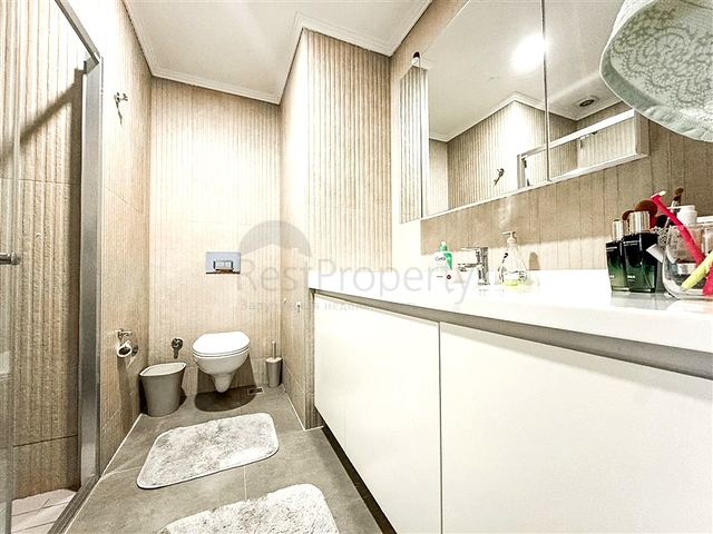 Квартира полностью меблирована и укомплектована бытовой техникой, выполнена в спокойных светлых тонах. В отделке использованы практичные и качественные материалы: гранитная столешница на кухне, ламинированные напольные покрытия, современные ванные комнаты с душевыми кабинами. Установлены системы кондиционирования, квартира подходит для оформления ВНЖ.