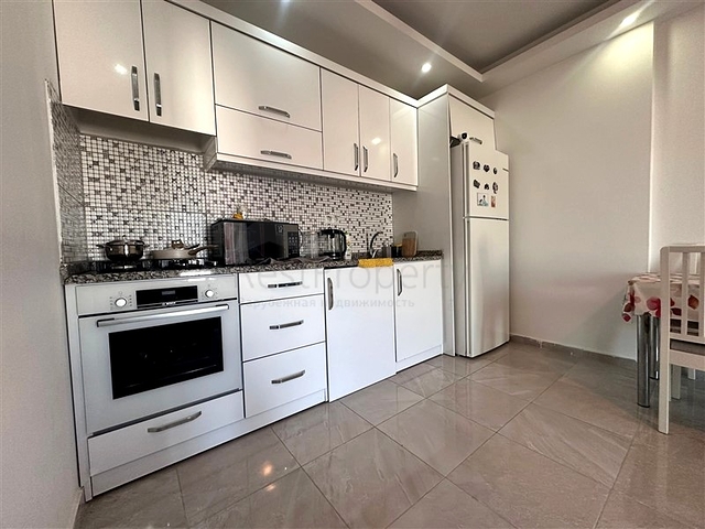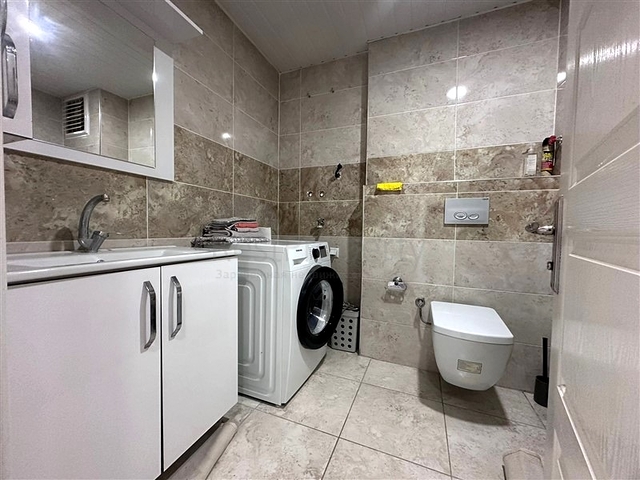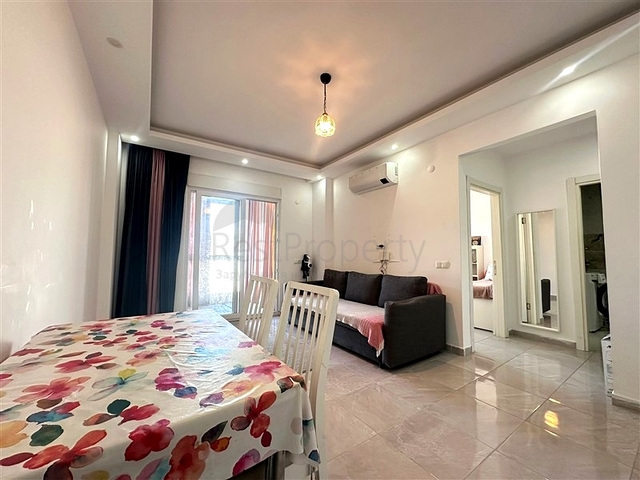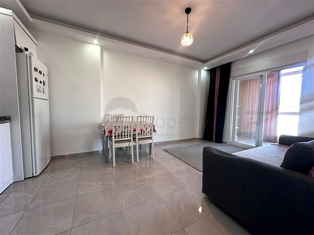 Уютная квартира формата 1+1 расположена на втором этаже жилого комплекса. Планировка включает гостиную с кухонной зоной, спальню, ванную комнату и балкон. Общая площадь — 60 м². Квартира продаётся с мебелью и бытовой техникой, полностью готова к проживанию. В отделке использованы практичные материалы: напольное покрытие из плитки, кухонная столешница из гранита, в ванной комнате установлен душевой уголок. Отопление и охлаждение обеспечиваются системой кондиционирования.