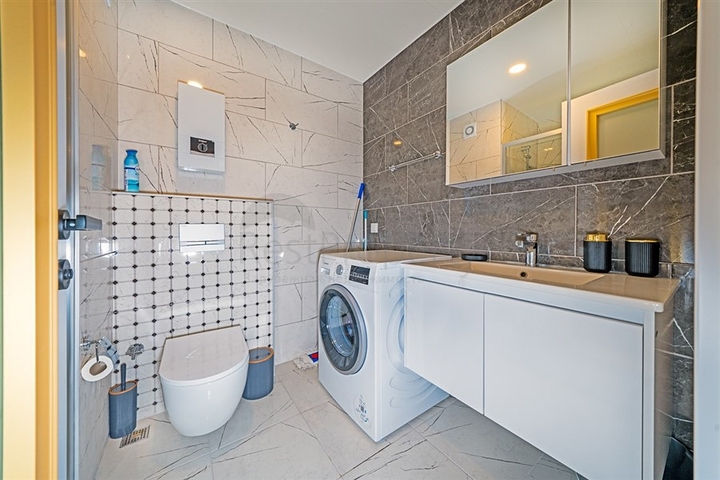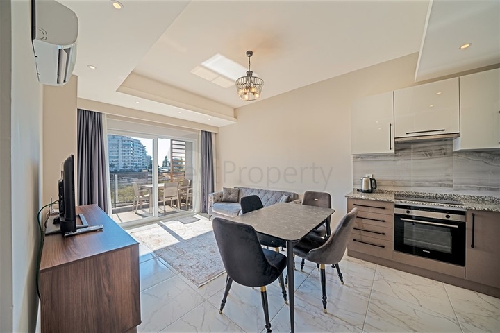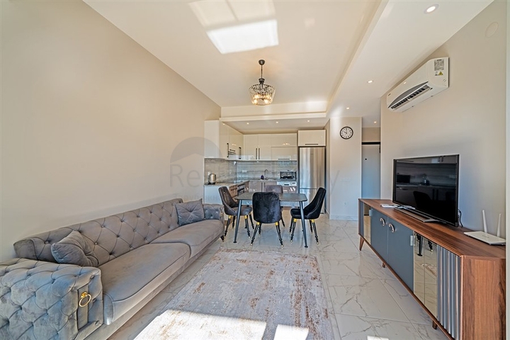Предлагается уютная квартира формата 1+1, расположенная на втором этаже современного жилого комплекса. Планировка продумана для комфортного проживания: гостиная с кухней открытого типа, спальня, санузел и балкон. Квартира полностью меблирована и укомплектована бытовой техникой, установлены кондиционеры, в санузле предусмотрен подогрев пола, кухня оснащена гранитной рабочей поверхностью, напольное покрытие выполнено из качественной плитки, в ванной комнате — душевая кабина.