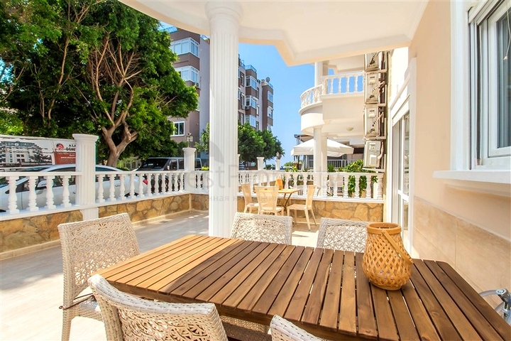 Предлагается ухоженная квартира 2+1, расположенная на первом этаже малoэтажного дома. Планировка удобная и функциональная: светлая гостиная с выходом на террасу, отдельная кухня с гранитной рабочей поверхностью, две спальни, санузел с душевой кабиной. Квартира полностью меблирована и укомплектована бытовой техникой, установлены кондиционеры, напольное покрытие — плитка, интерьер выполнен в спокойных светлых тонах.