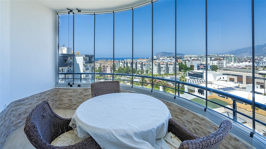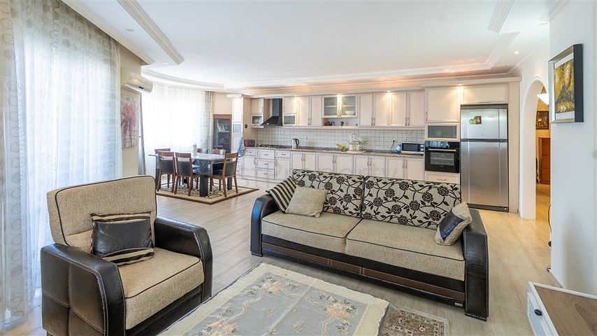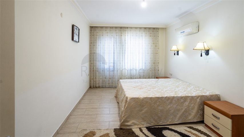 Квартира планировки 2+1 расположена на верхнем этаже жилого комплекса и отличается удобной внутренней организацией. Гостиная объединена с обеденной зоной, кухня выделена отдельно и оснащена рабочей поверхностью из гранита. Две изолированные спальни, санузел и дополнительный туалет обеспечивают комфорт для повседневной жизни. В квартире выполнена аккуратная отделка, напольное покрытие — керамическая плитка, установлены кондиционеры. Объект укомплектован мебелью и бытовой техникой, предусмотрены три балкона.