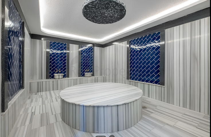 На территории комплекса предусмотрена инфраструктура для комфортной жизни и отдыха: открытый бассейн, детский бассейн, сауна, хамам, паровая комната, фитнес-зал, детская игровая площадка, зелёный сад, зона барбекю.
