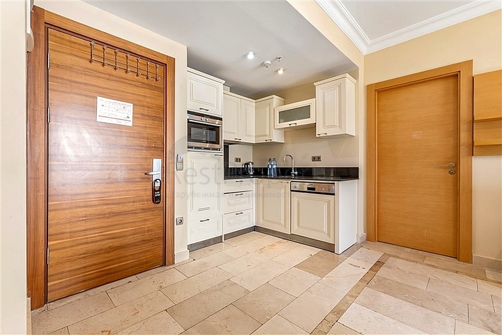 Квартира полностью меблирована и укомплектована бытовой техникой, установлены кондиционеры, кухонная столешница выполнена из гранита, напольное покрытие – керамическая плитка, в ванных комнатах установлены душевые кабины. Интерьер выполнен в светлых тонах, что создаёт ощущение уюта и гармонии.