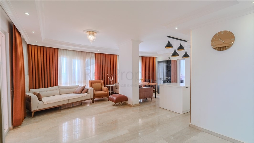 Предлагается просторная квартира планировки 2+1 в районе Тосмур. Квартира расположена на верхнем этаже жилого комплекса и отличается удобной функциональной планировкой. Общая площадь составляет 125 м² и включает светлую гостиную, кухонную зону, две спальни, два санузла и два балкона.