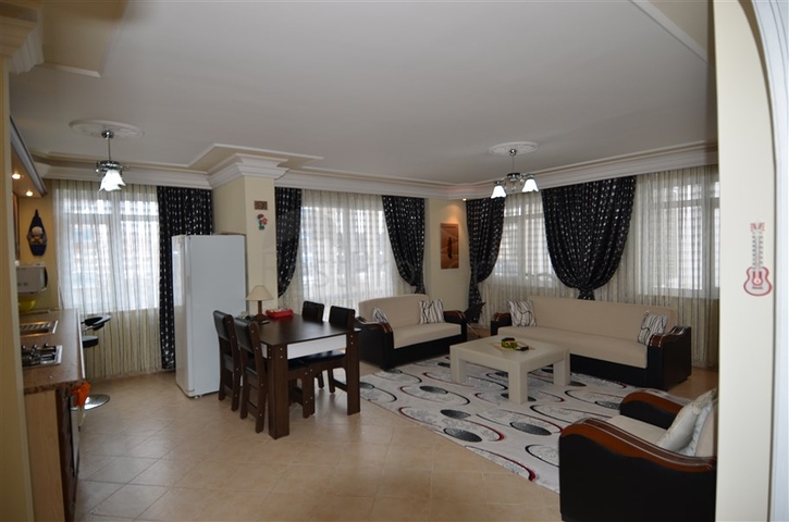 Просторные, полностью меблированные апартаменты в Махмутларе выставлены на продажу. Квартира планировкой 2+1 располагается в комплексе с собственным бассейном, всего в 300 метрах от моря. До центра района тоже рукой подать – 200 метров, это несколько минут размеренным шагом.