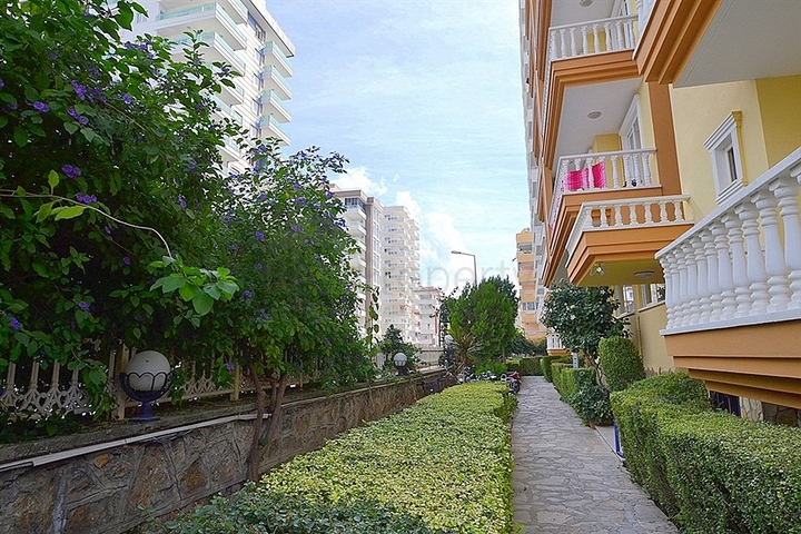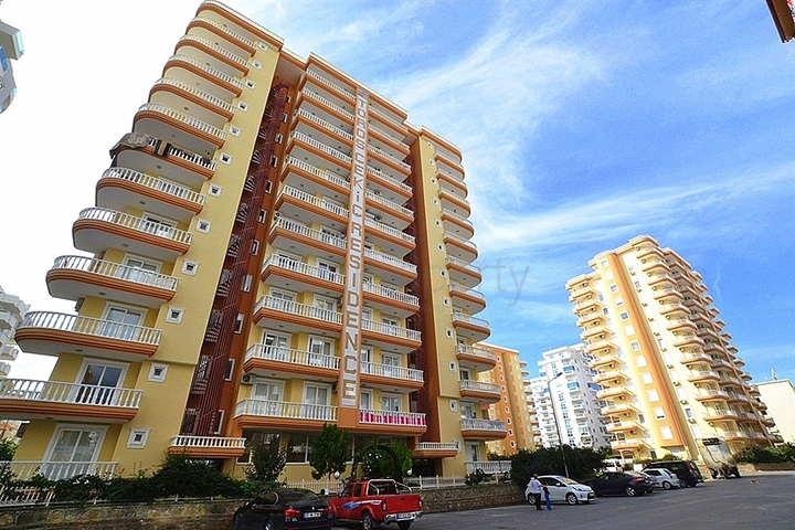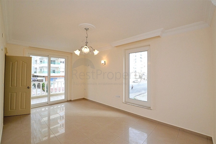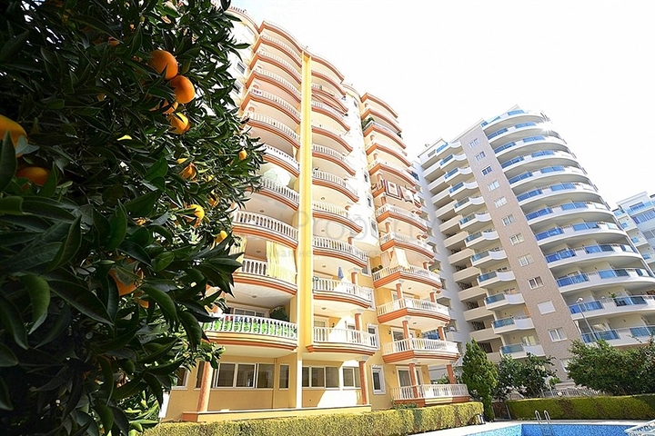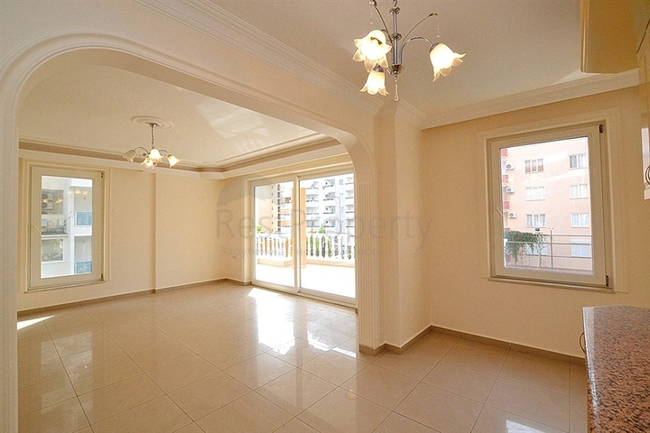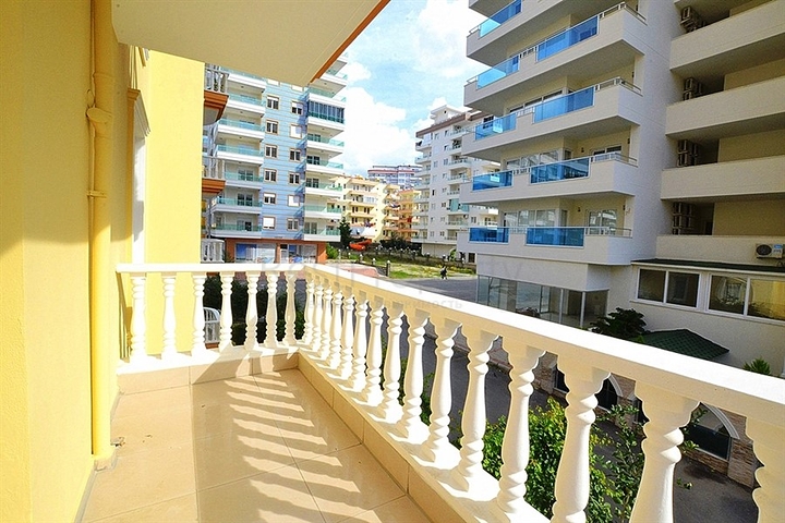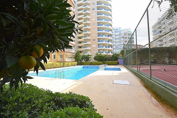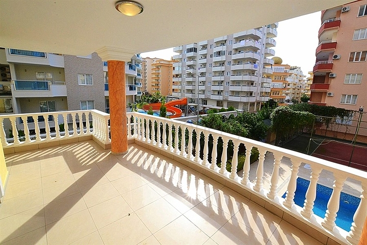 В благоустроенном комплексе с отельной инфраструктурой в районе Махмутлар выставлена на продажу светлая трехкомнатная квартира с двумя балконами.