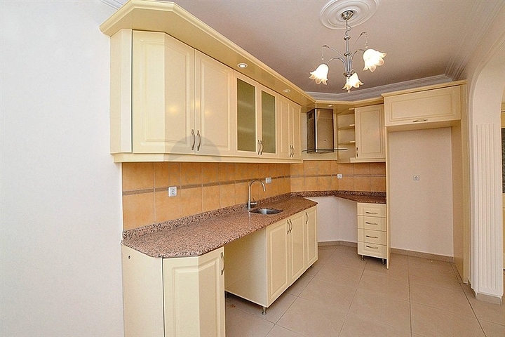 Апартаменты планировкой 2+1, общей площадью 130 м² имеют гостиную, которая совмещена с кухонной зоной и две изолированные комнаты. Кухонный гарнитур и необходимая сантехника в ванных комнатах в наличии.