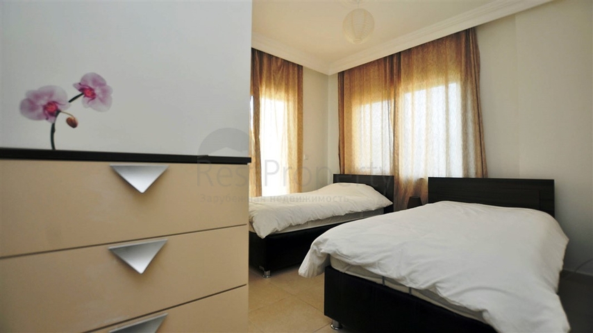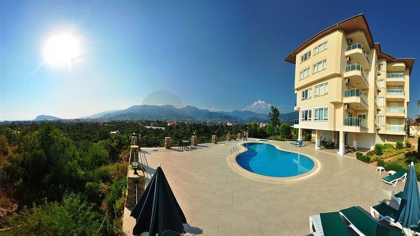 У подножья горной гряды Таурус в комплексе с зеленым ухоженным садом и бассейном выставлена на продажу полностью меблированная трехкомнатная квартира общей площадью 110 м².