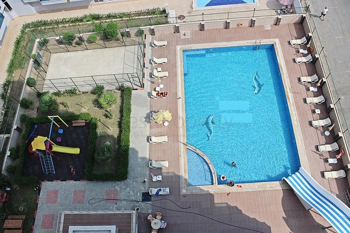 К услугам жильцов и гостей интернет, большой открытый бассейн с водными горками, зоной отдыха с шезлонгами, огороженная от основной детская территория. Финская сауна и турецкий хамам позволят вам расслабиться в любое время. В комплексе имеется современный тренажерный зал, зона барбекю с удобной беседкой, детская площадка удобно разместившаяся на зеленой лужайке. Есть собственный генератор, круглосуточная охрана, открытая парковка. Ежемесячное обслуживание (айдат) составляет 100 турецких лир.