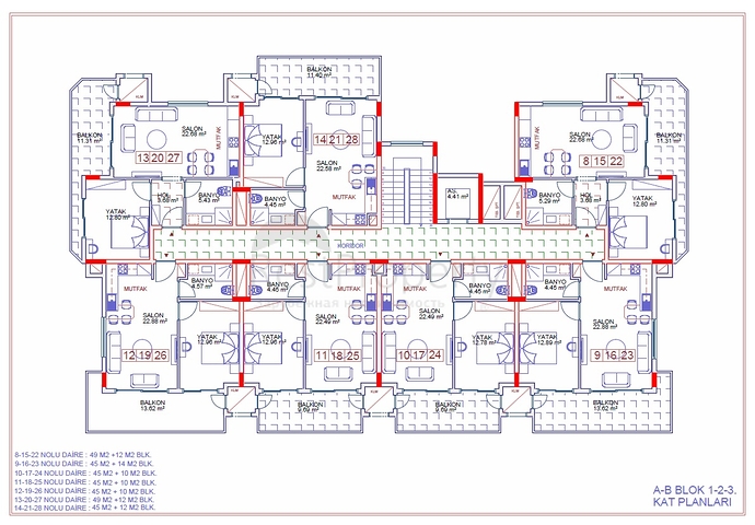 Комплекс состоит из 2-х блоков. На продажу выставлены двухкомнатные и трёхкомнатные апартаменты. Вы сможете остановить свой выбор на двухуровневом дуплексе с выходом в сад, пентхаусе или уютной квартире.