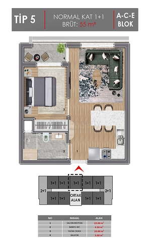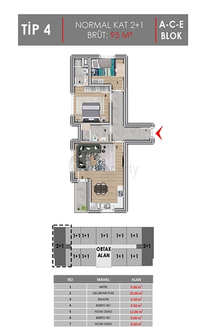 На продажу предлагаются квартиры с балконом планировки 1+1 площадью 55 м2 и 2+1 площадью 95 м2. В квартире имеется базовое оборудование к беспроводному интернету, спутниковому телевидению. Ванные комнаты оборудованы сантехникой с душевой кабиной, выложены плиткой. Кухни - выложены мрамором, оборудованы вытяжкой, варочной плитой и духовой плитой. В комнатах постелен ламинат, на окнах предусмотрены электрические жалюзи, а так же встроен домофон с видеонаблюдением. Окончание строительства 2025 год.