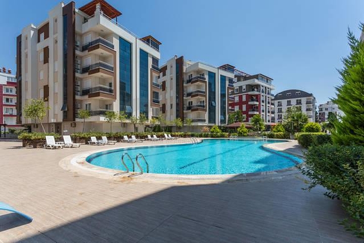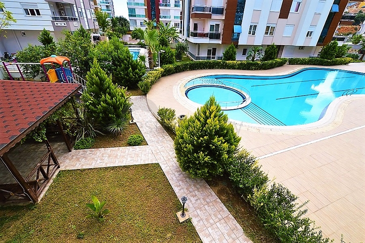 На продажу выставлены апартаменты 2+1 в районе Антальи Коньяалты, в микрорайоне Хурма. Квартира располагается на втором этаже в пятиэтажном комплексе. Общая площадь апартаментов 87 м2. В стоимость уже включены: пакет мебели и техники, вся корпусная мебель, 3 кондиционера. Окна квартиры выходят на бассейн и величественные горы Торос.
