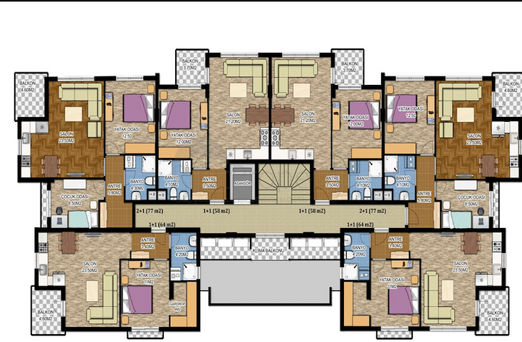 Готовый проект в районе Лиман Анталья в 800 метрах от пляжей Коньяалты. Общее количество квартир 23, в каждой квартире проведен природный газ, установлен двухконтурный газовый котел, батареи. В пешей доступности городские парки с детскими и спортивными площадками, продуктовые магазины, кофейни, булочные, восточный базар по вторникам. Остановки общественного транспорта 5 минут.