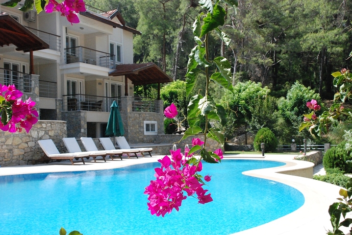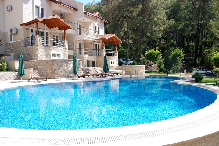 В Геджеке в уютном зеленом месте в малоэтажном комплексе с большим бассейном в продаже апартаменты с тремя спальнями с террасами, в которые стучатся ветками сосны. Геджек – небольшой уютный городок неподалеку от Фетхие с выходом к Средиземному морю, в котором расположились целых 4 марины, где яхтсмены со всего мира предаются любимому увлечению. </p><p>