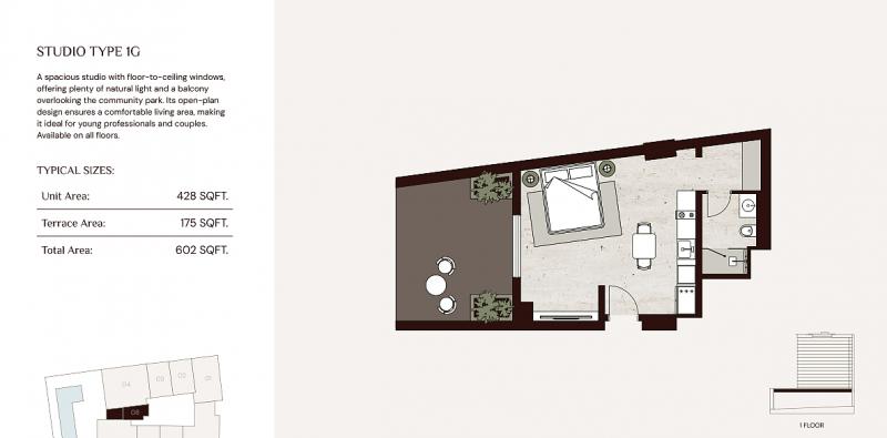 Предлагается стильная Квартира с планировкой 0+1 и общей площадью 44 м², расположенная на 8 этаже 16-этажного дома в Дубай. Количество спален: 0, ванных комнат: 1. В комплексе имеются: Спутниковое ТВ, Круглосуточная охрана, Кафе / Ресторан, Видеонаблюдение, Фитнес, Парковка, Магазины / ТЦ.