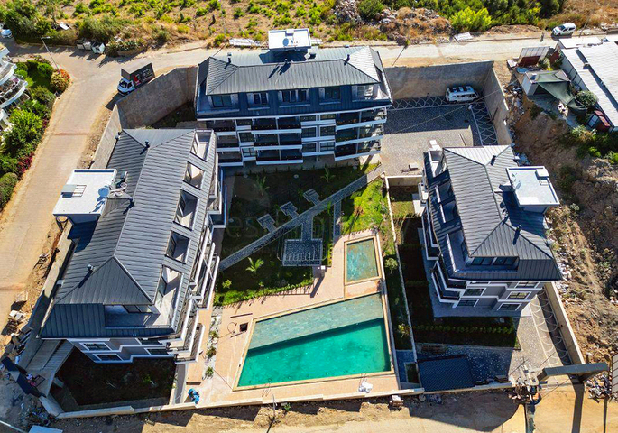 Квартиры с прекрасными видовыми характеристиками в планировках 1+1, 2+1 и 3+1, будут представлены в чистовой отделке, с кухонным комплектом мебели и укомплектованными ванными комнатами. Территория комплекса будет оснащена открытой и закрытой парковкой и камерами наблюдения. Инфраструктура включает в себя: открытый и закрытый бассейн, детский бассейн и игровая площадка, сауну, хаммам, зеленый сад с выделенной зоной для барбекю. Комплекс расположен в 56 км от аэропорта и в 300 метрах от Средиземного моря.
