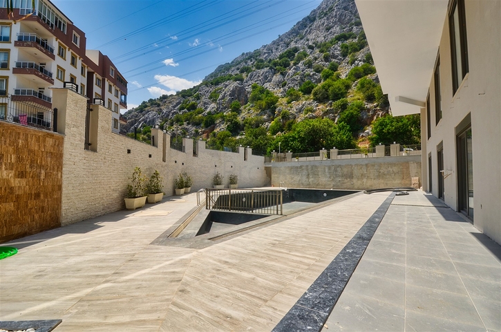 Представленные квартира расположены в жилом комплексе, Комплекс находится на расстоянии 2 км от моря, 10 км от центра города, 19 км от международного аэропорта. На территории комплекса предусмотрены: Консьерж, Зеленый сад, Детская площадка, Круглосуточная охрана, Открытая парковка, Беседки для отдыха, Детский бассейн, Открытый бассейн