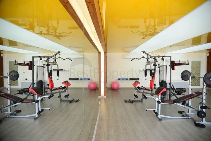 Комплекс с инфраструктурой хорошего отеля. Большой открытый бассейн с водными горками, детский для малышей. В СПА зоне имеются крытый бассейн, финская сауна, турецкий хамам, парная все это дает возможность получить удовольствие телу и душе. Любителям спорта понравится современный тренажерный зал, настольный теннис, бильярд, теннисный корт, баскетбольная площадка. Детская площадка на зеленой лужайке. Тем, кто захочет устроить пикник или встречу с компанией есть зона барбекю с уютной беседкой в зеленой зоне. Игровая комната, мини клуб, спутниковое телевидение, комната для совещаний и бар. Собственный генератор. Открытая и крытая парковки. Круглосуточное видеонаблюдение и охрана, на воротах вас встретит консьерж. Айдат (ежемесячный платеж) составляет 3000 турецких лир в год.
